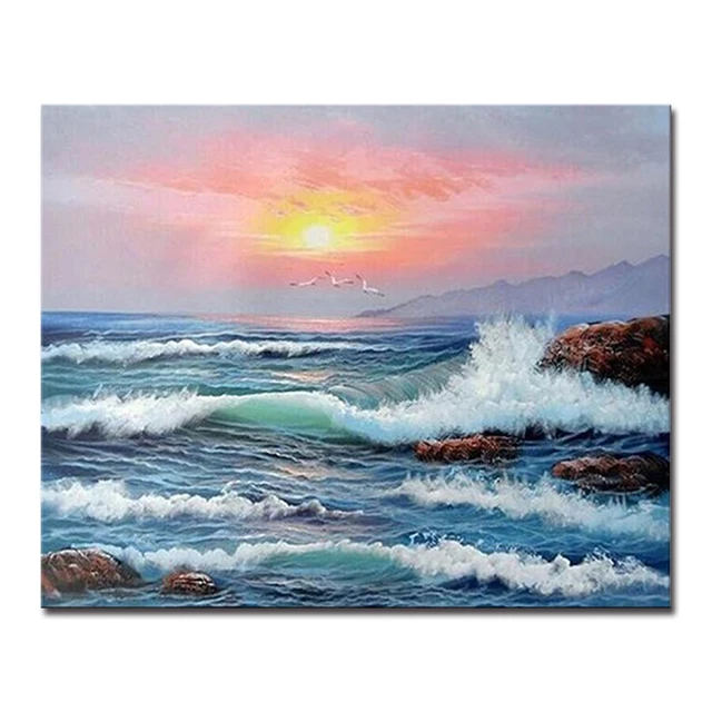 Diy Lukisan Laut Dengan Angka Sunset Laut Gelombang Gambar Dinding