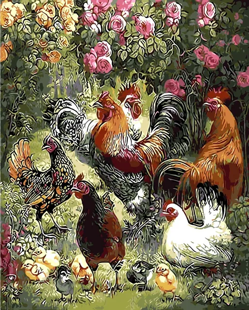 Bunga Dan Taman Ayam Hewan Lukisan Minyak Gambar Dengan Nomor